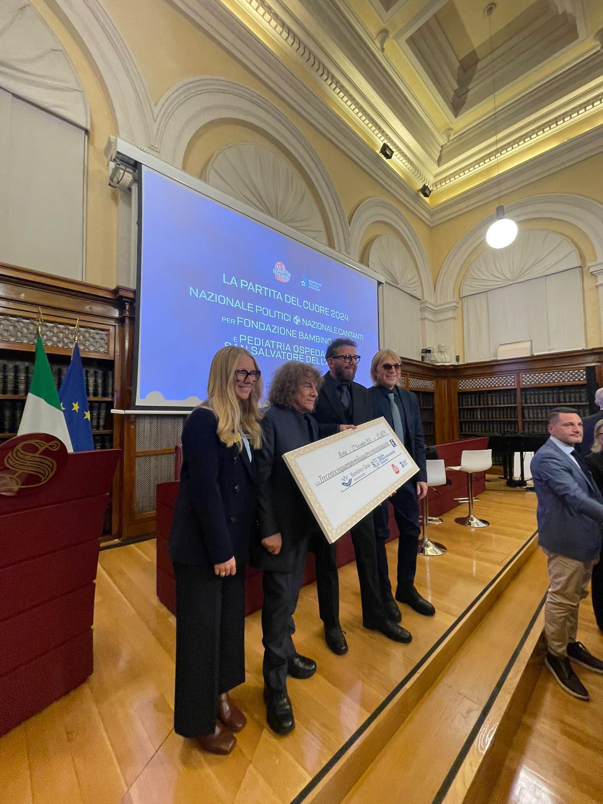 Si è svolta oggi, mercoledì 27 novembre, alle ore 13:30 nella prestigiosa cornice della Sala Koch al Senato, la consegna da parte di Nazionale Cantanti di un assegno simbolico di 351.487 mila euro.